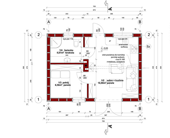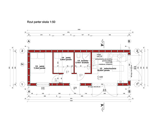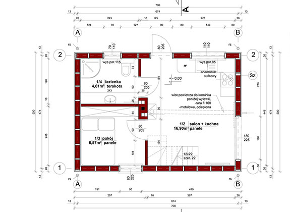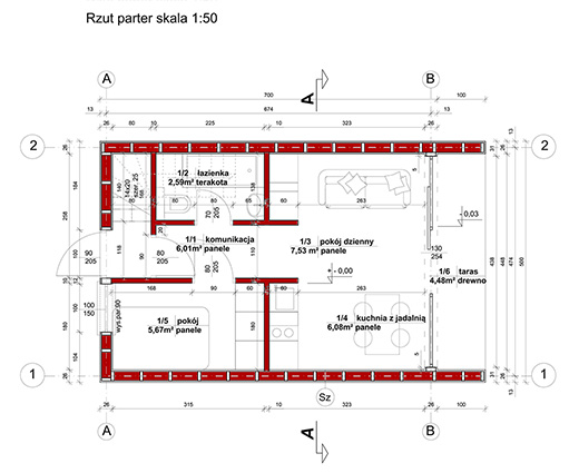 1. Projekt widocznego domu do 35m2 zabudowy.