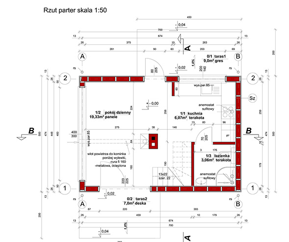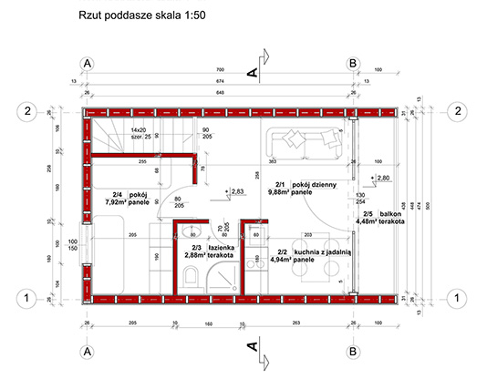 - wysokość budynku 7.04 m / ścianka kolankowa 1.20 m
