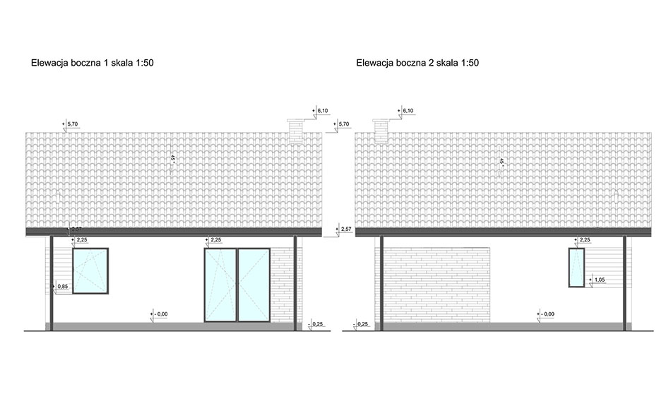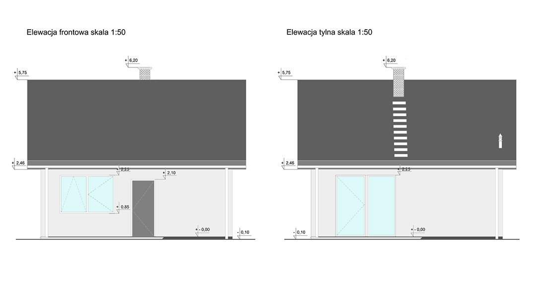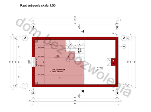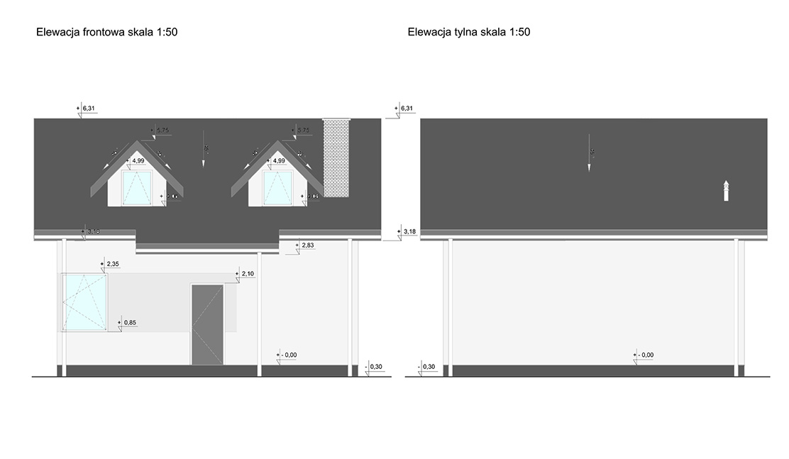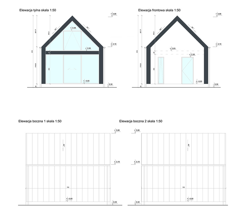 - wysokość budynku 7.41 m / ścianka kolankowa 160 cm