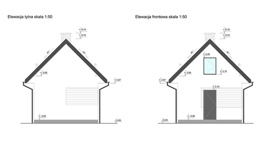 - wysokość budynku 6.61 m / ścianka kolankowa 80 cm