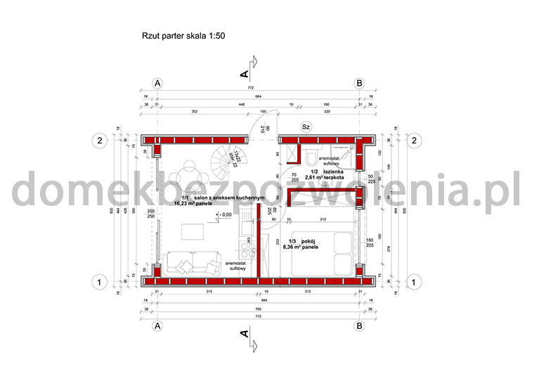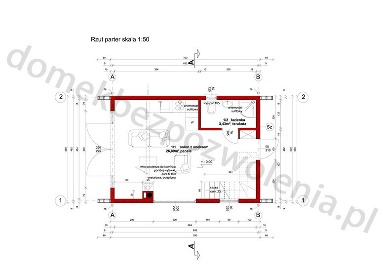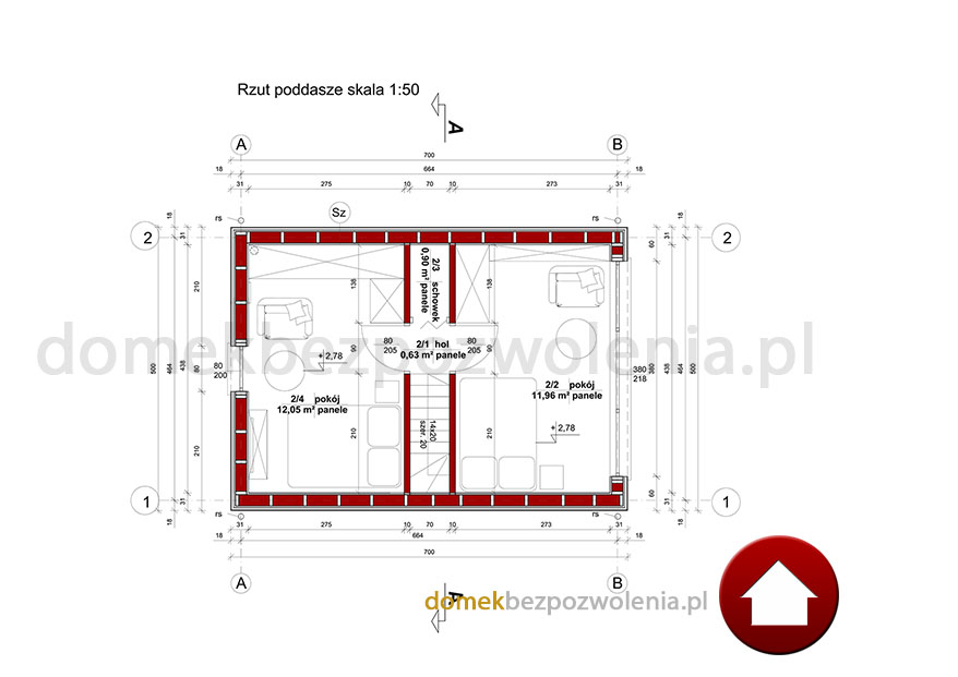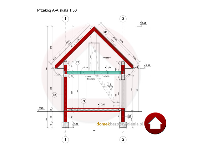- wysokość budynku ze strychem 6.26 m, ścianka kolankowa 53cm