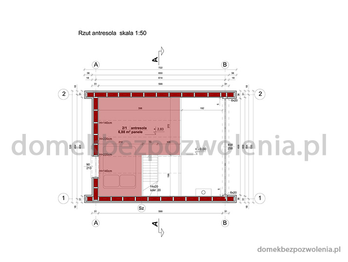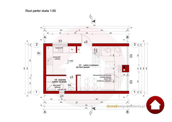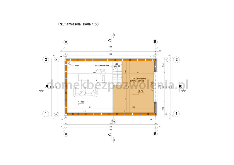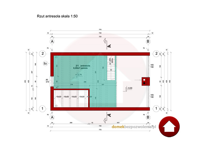 Gotowy projekt Domu 35m2 z Antresolą (częściowym poddaszem) lub z Poddaszem / Strychem.