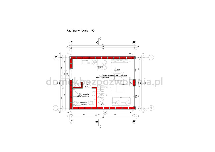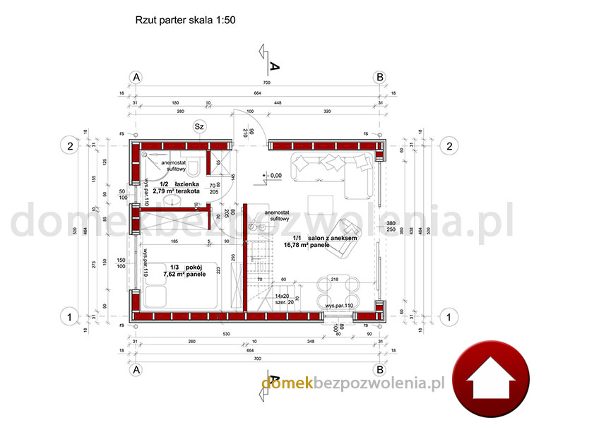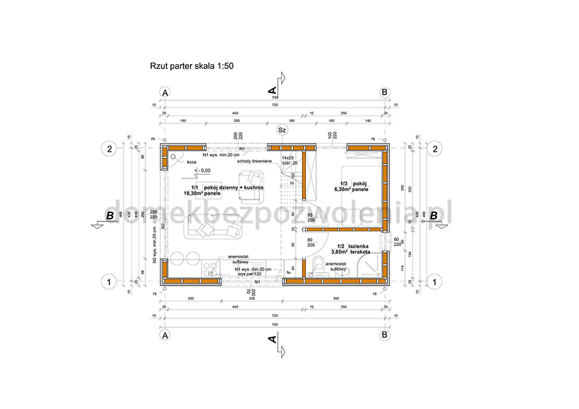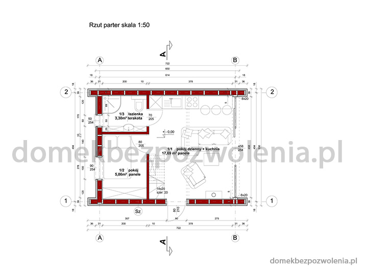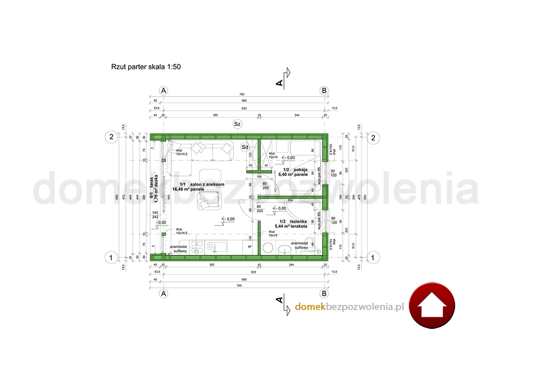 1. Projekt widocznego domu na zgłoszenie do 35m2 zabudowy.