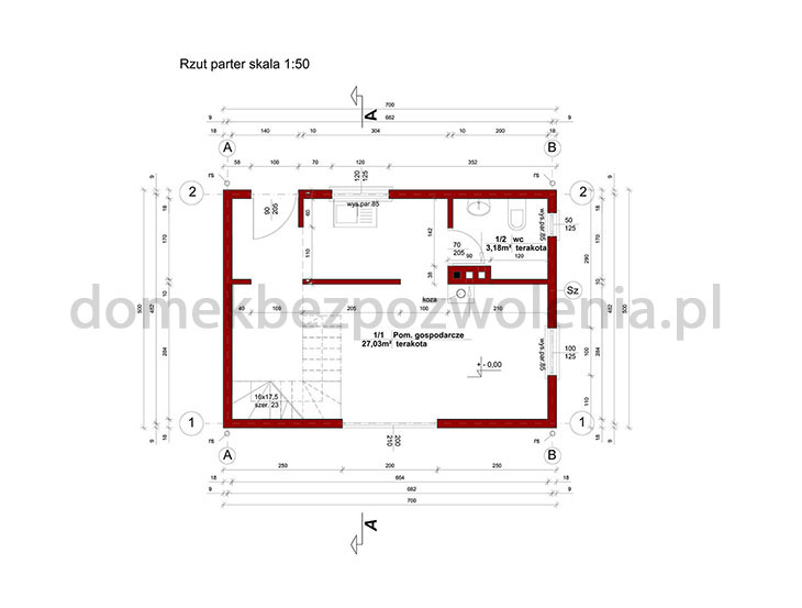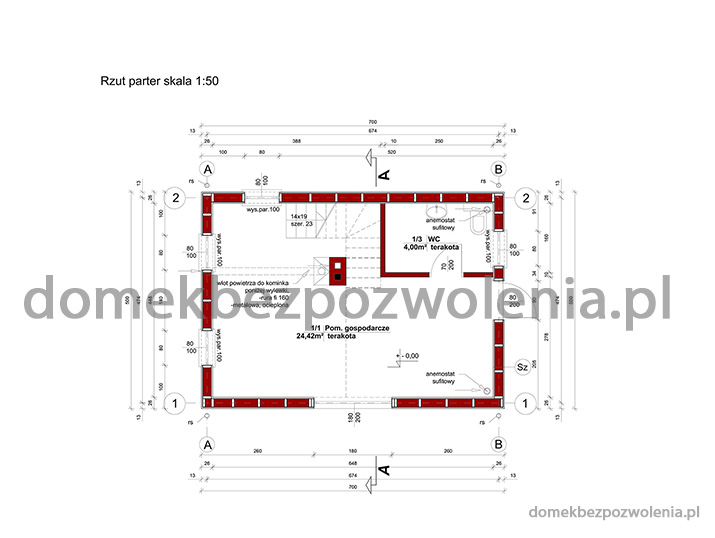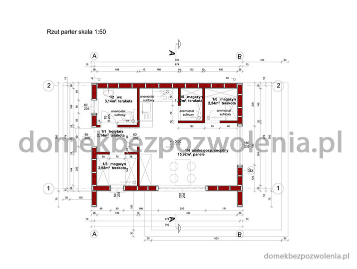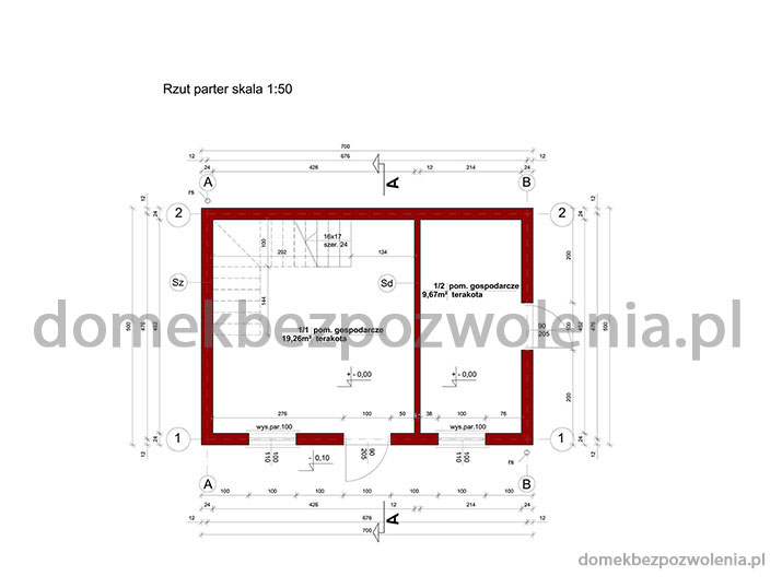 Gotowy projekt Budynku Gospodarczego do 35m2 - murowany, strop drewniany.