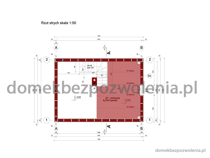 Gotowy projekt Budynku Gospodarczego do 35m2 - szkieletowy, antresola drewniana.