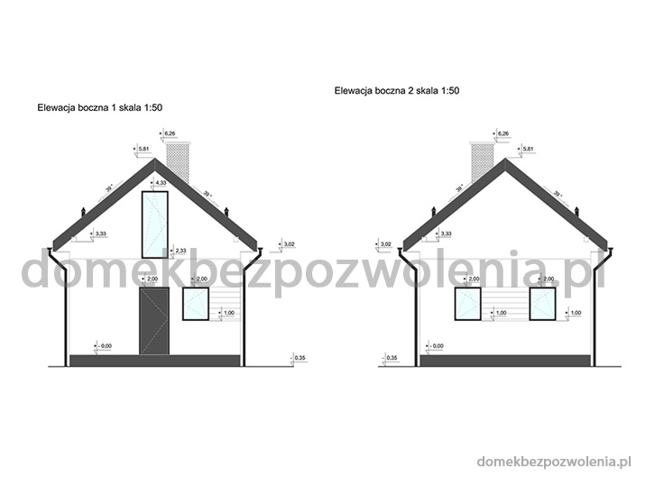 1. Projekt widocznego budynku na zgłoszenie do 35m2 zabudowy.