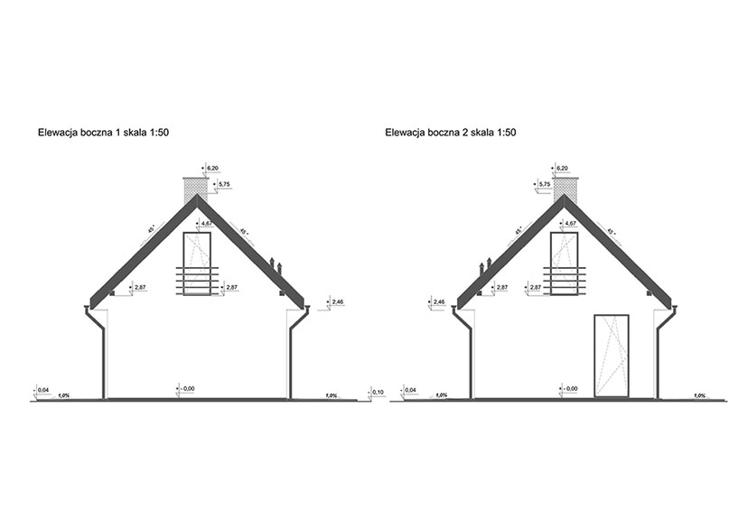 - kąt dachu 45° / lukarny 15°