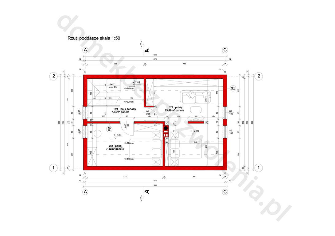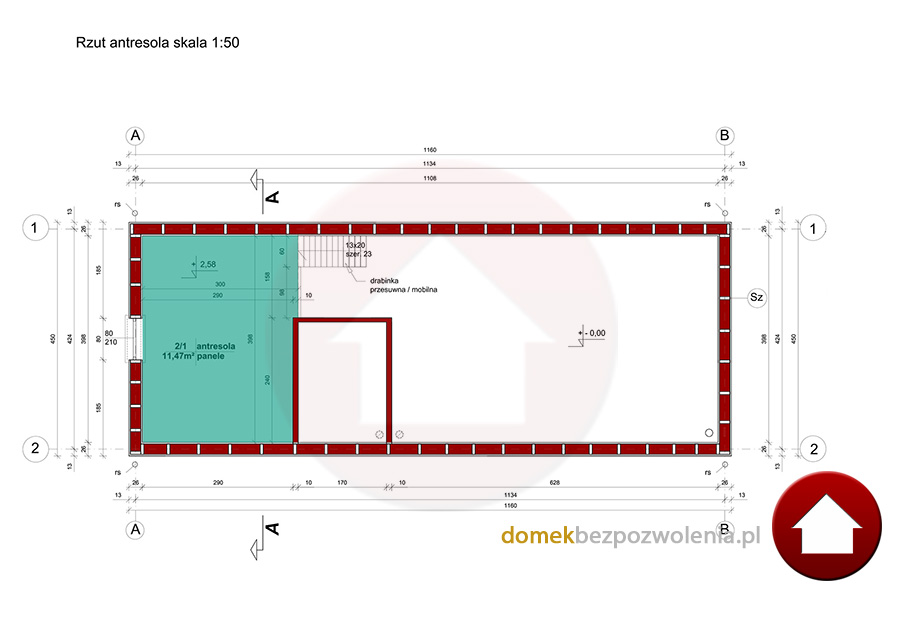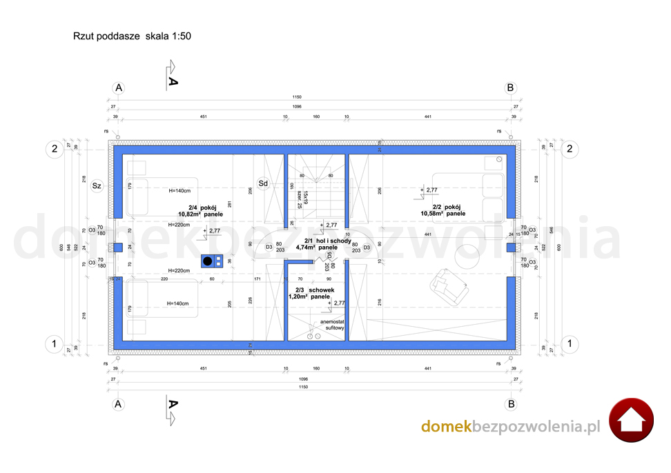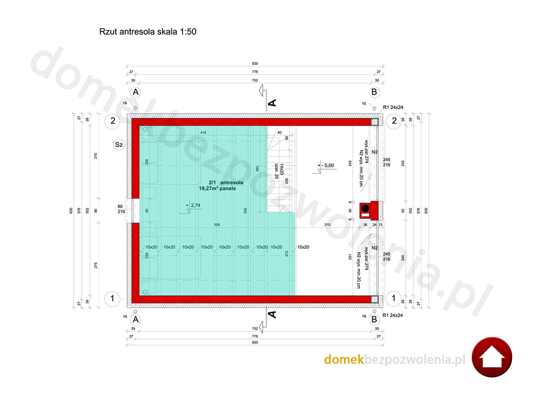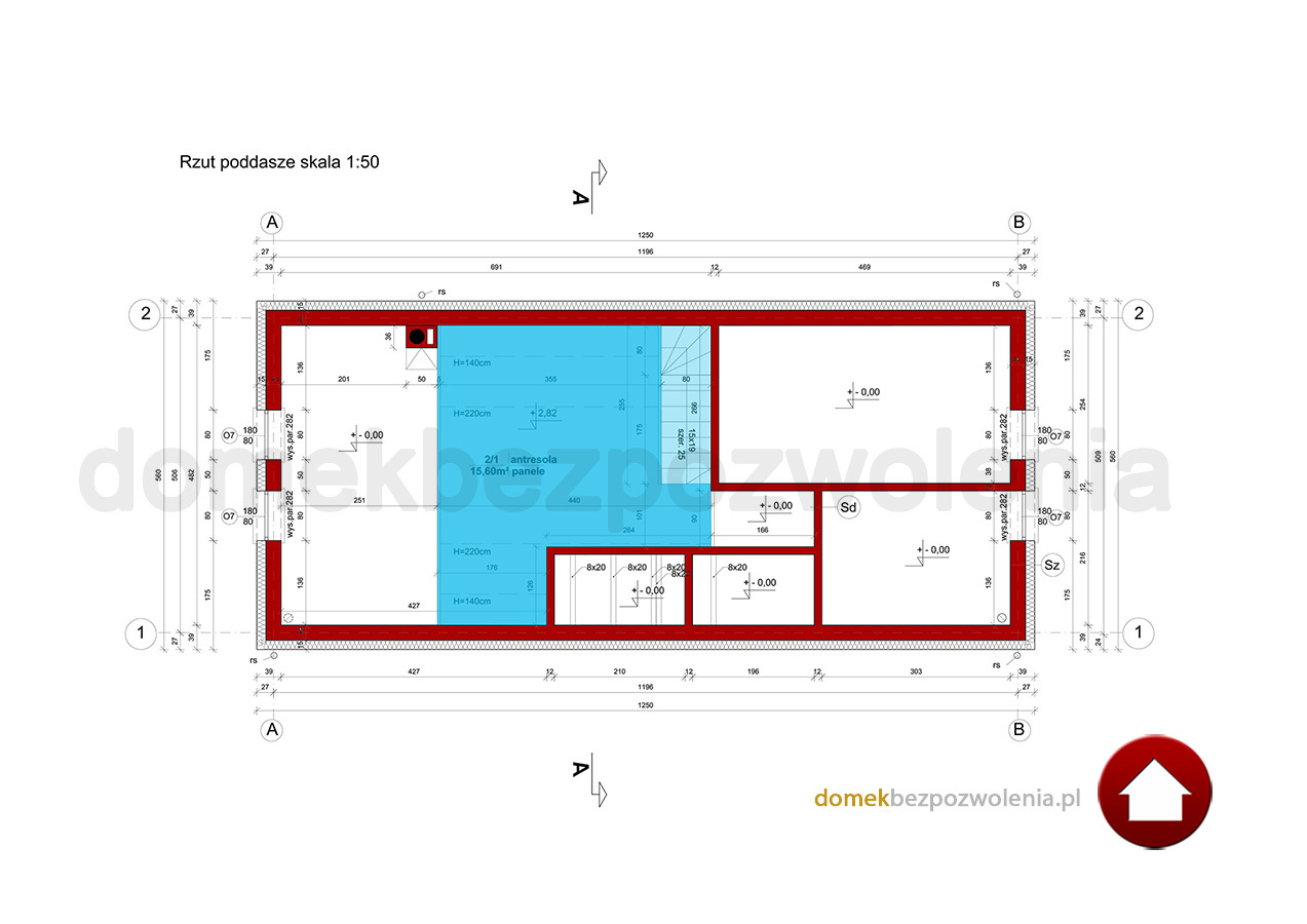 - Rzut antresoli lub poddasze / strych skala 1:50 ( w zależności od wyboru)