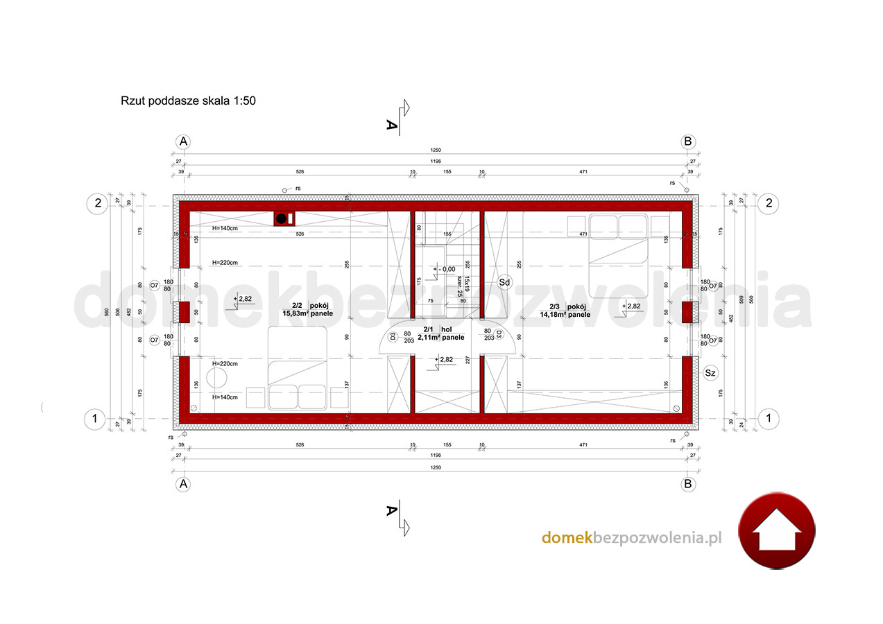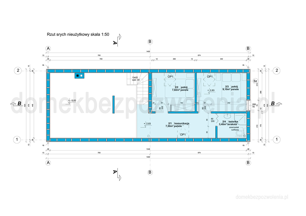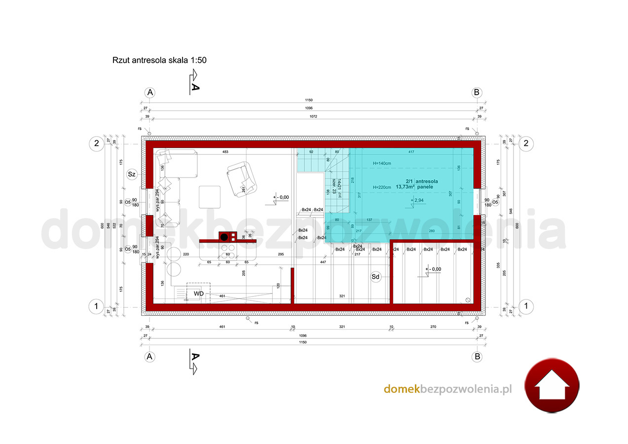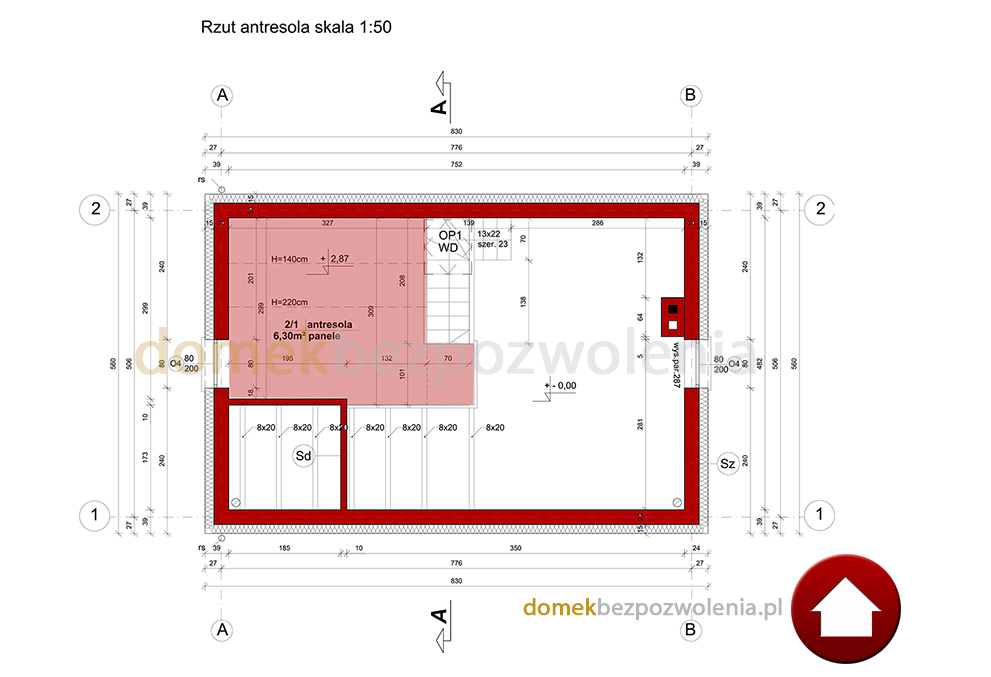 - Rzut antresoli lub poddasze / strych skala 1:50 ( w zależności od wyboru)