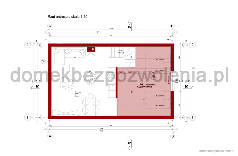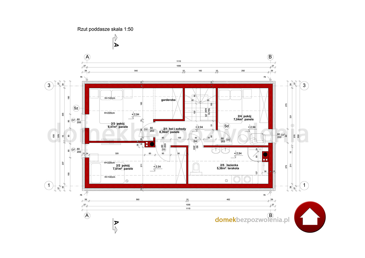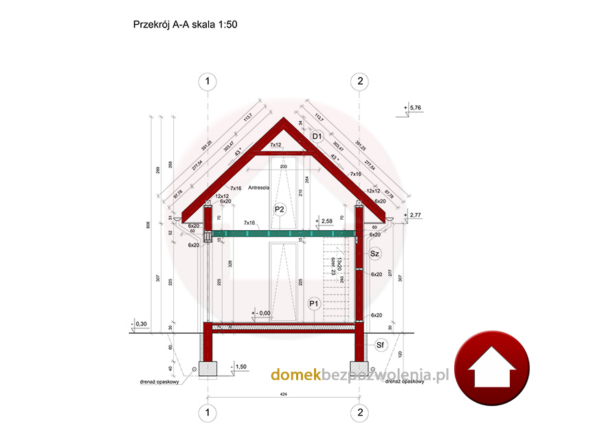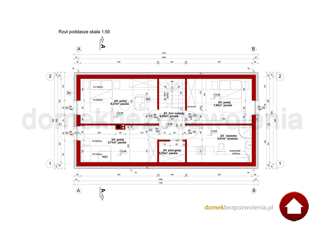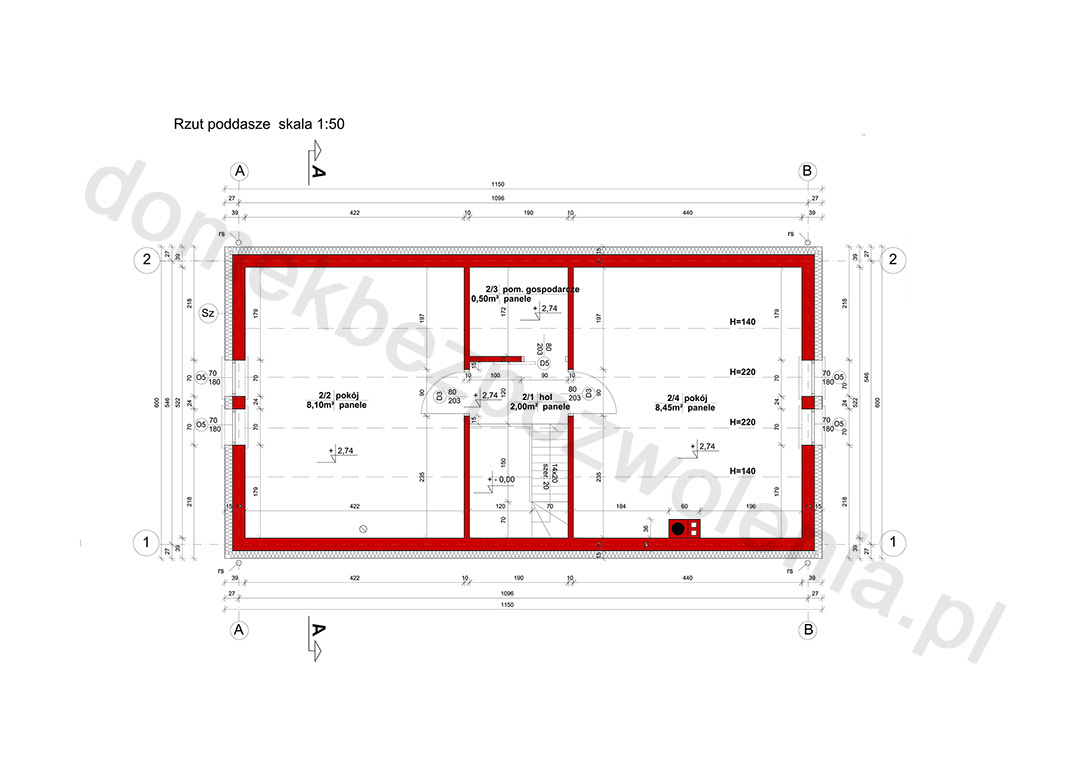 - Rzut antresoli lub poddasze / strych skala 1:50 ( w zależności od wyboru)