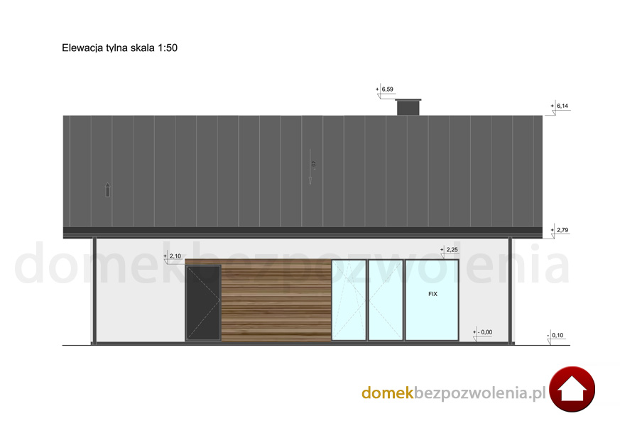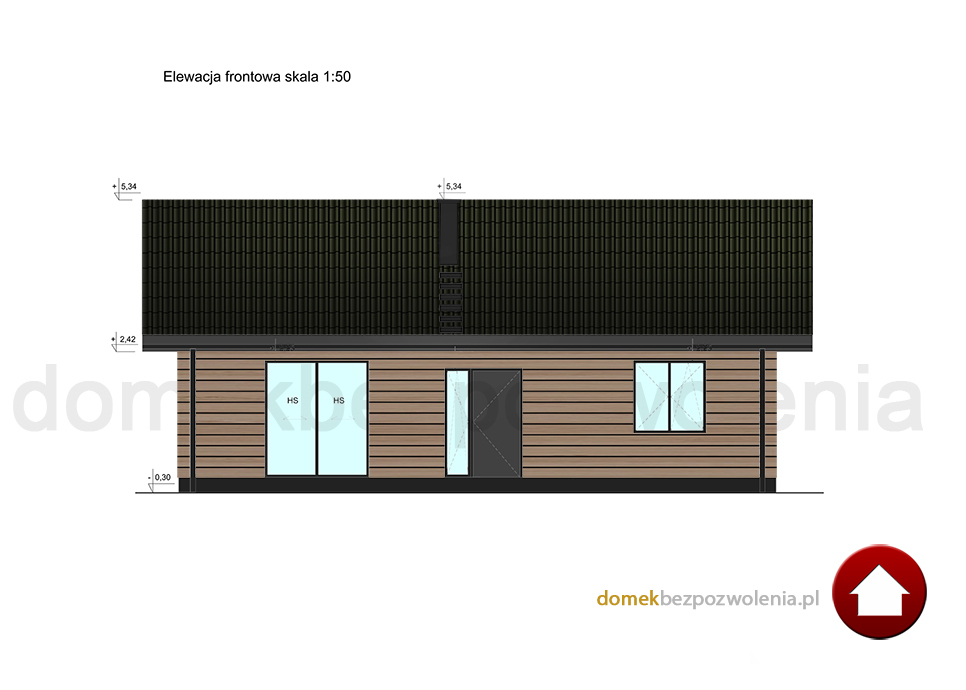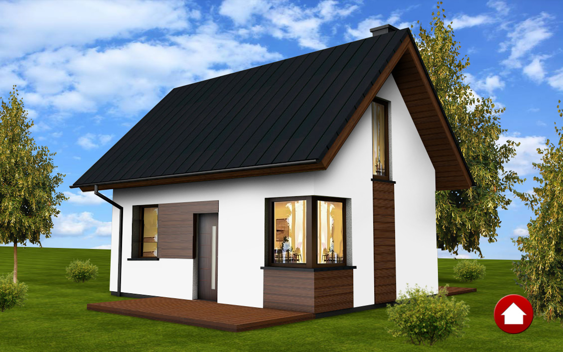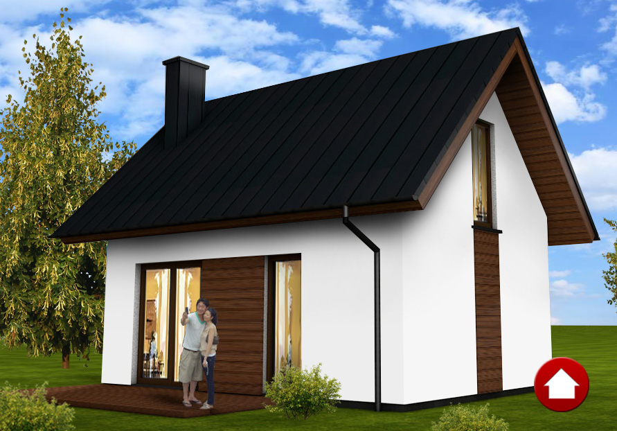 1. Projekt widocznego domu do 60m2 zabudowy.