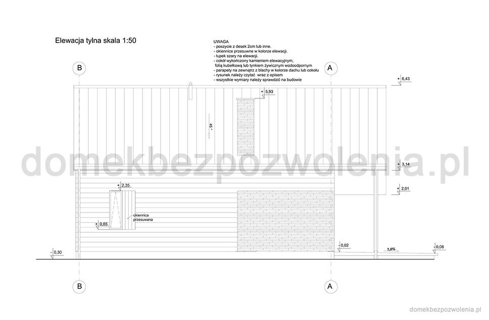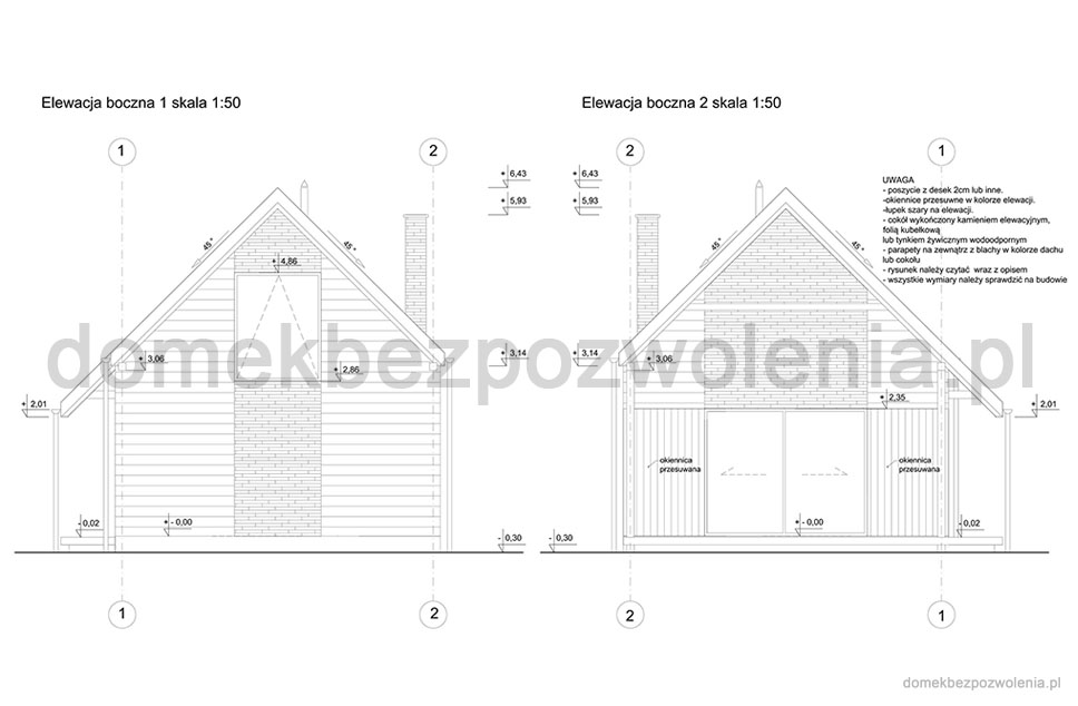 - wysokość budynku 6.73 m / ścianka kolankowa 60 cm