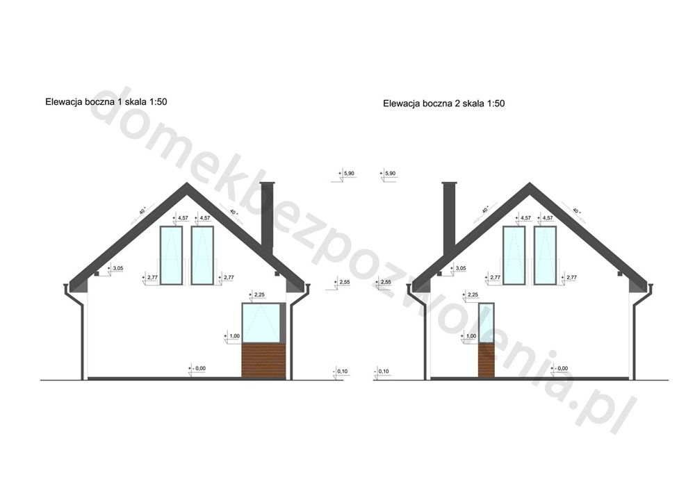 - kąt dachu 45° / ścianka kolankowa 90cm