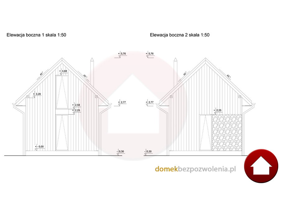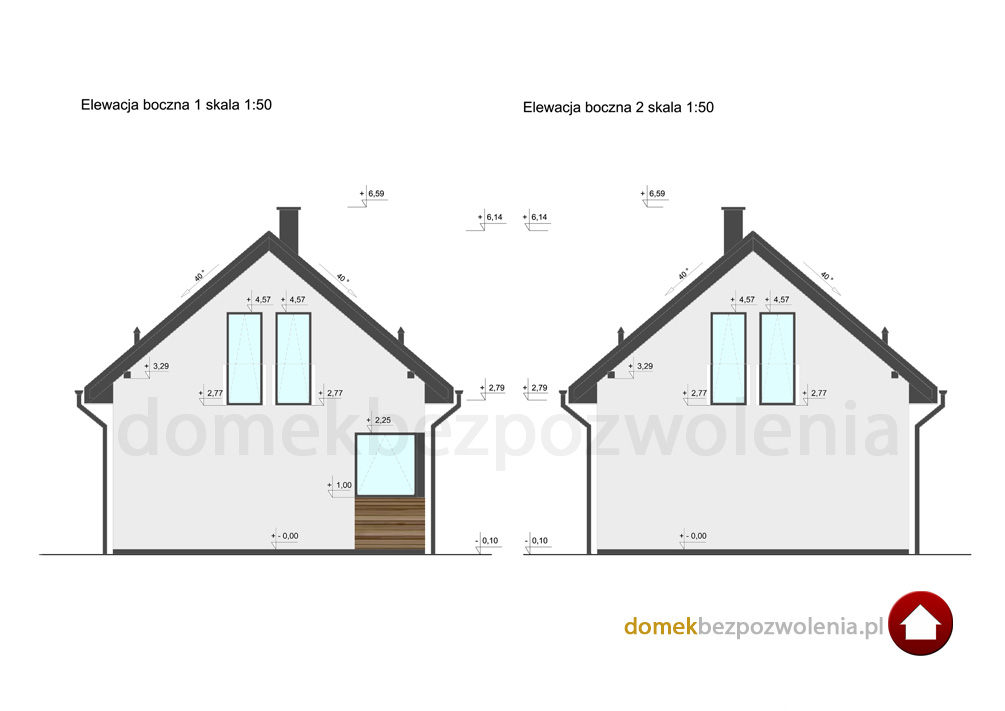 - wysokość budynku 6.99 m / ścianka kolankowa 40cm