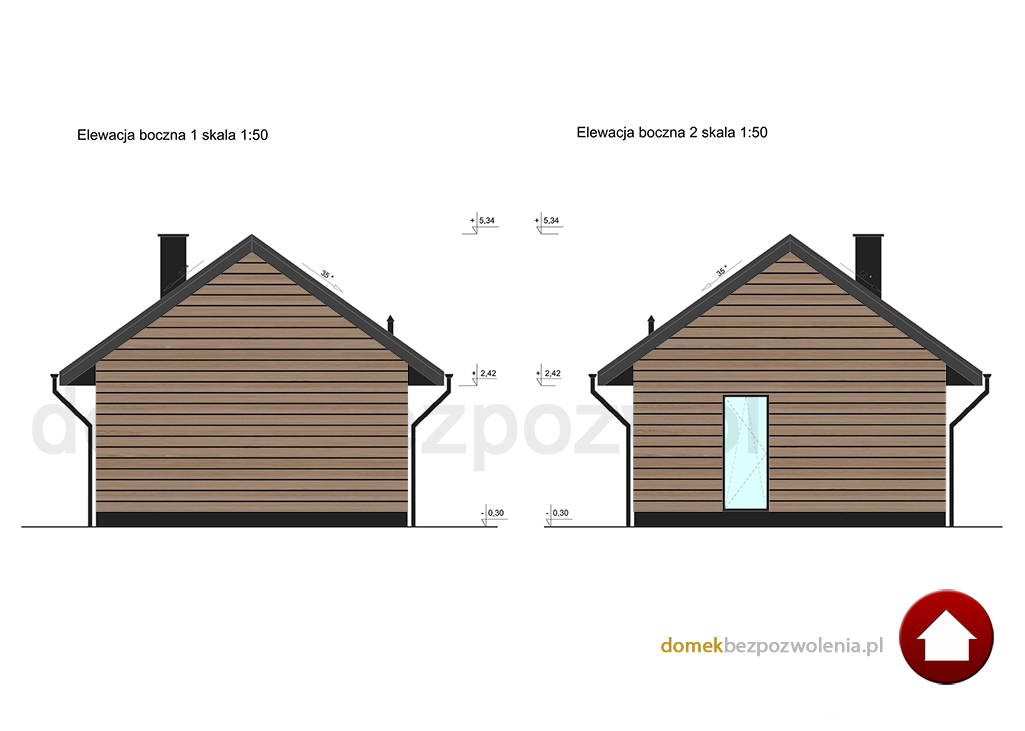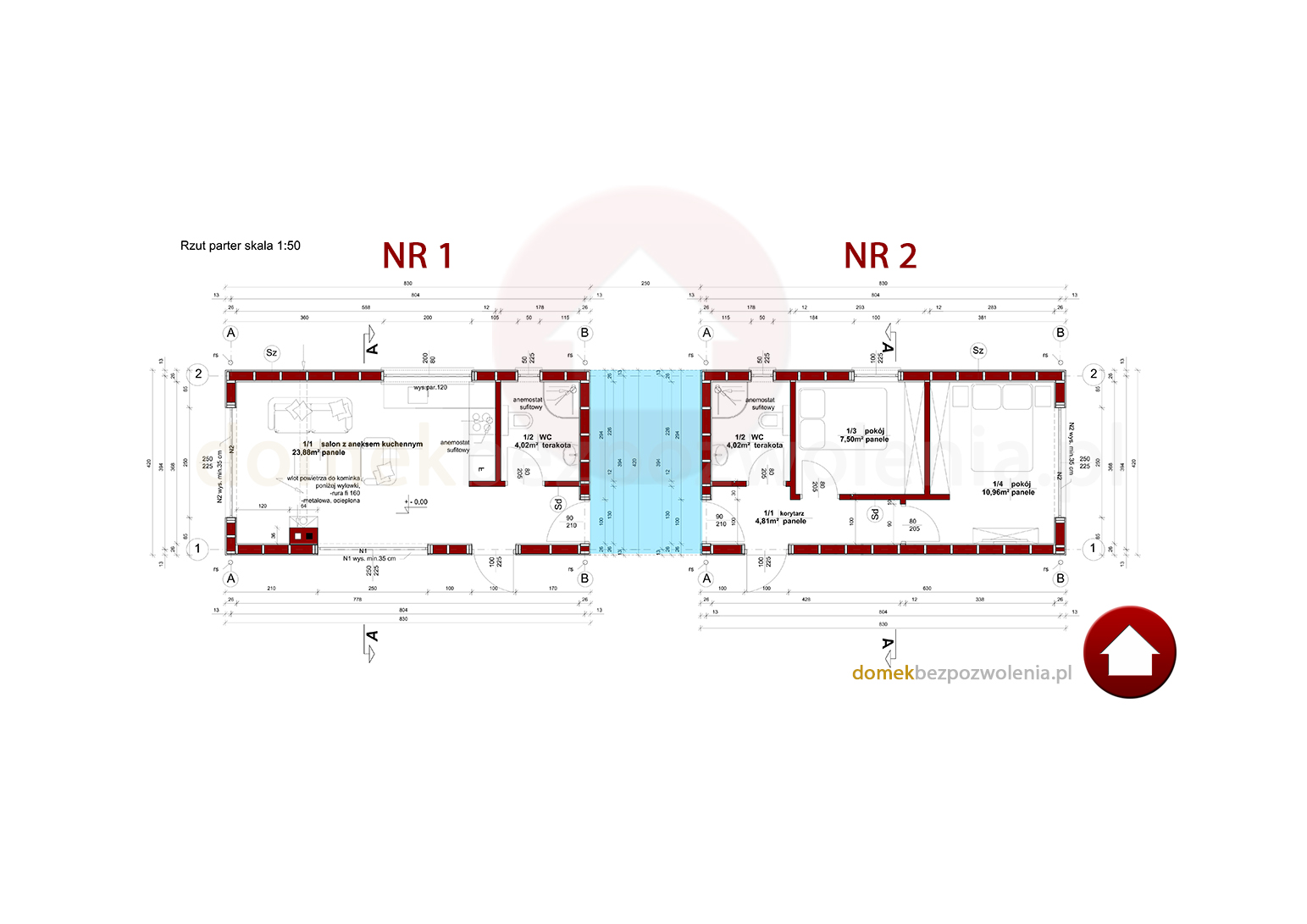 Wymiary domu nr 1: 8.30 m x 4.20 m i nr 2: 8.30 m x 4.20 m