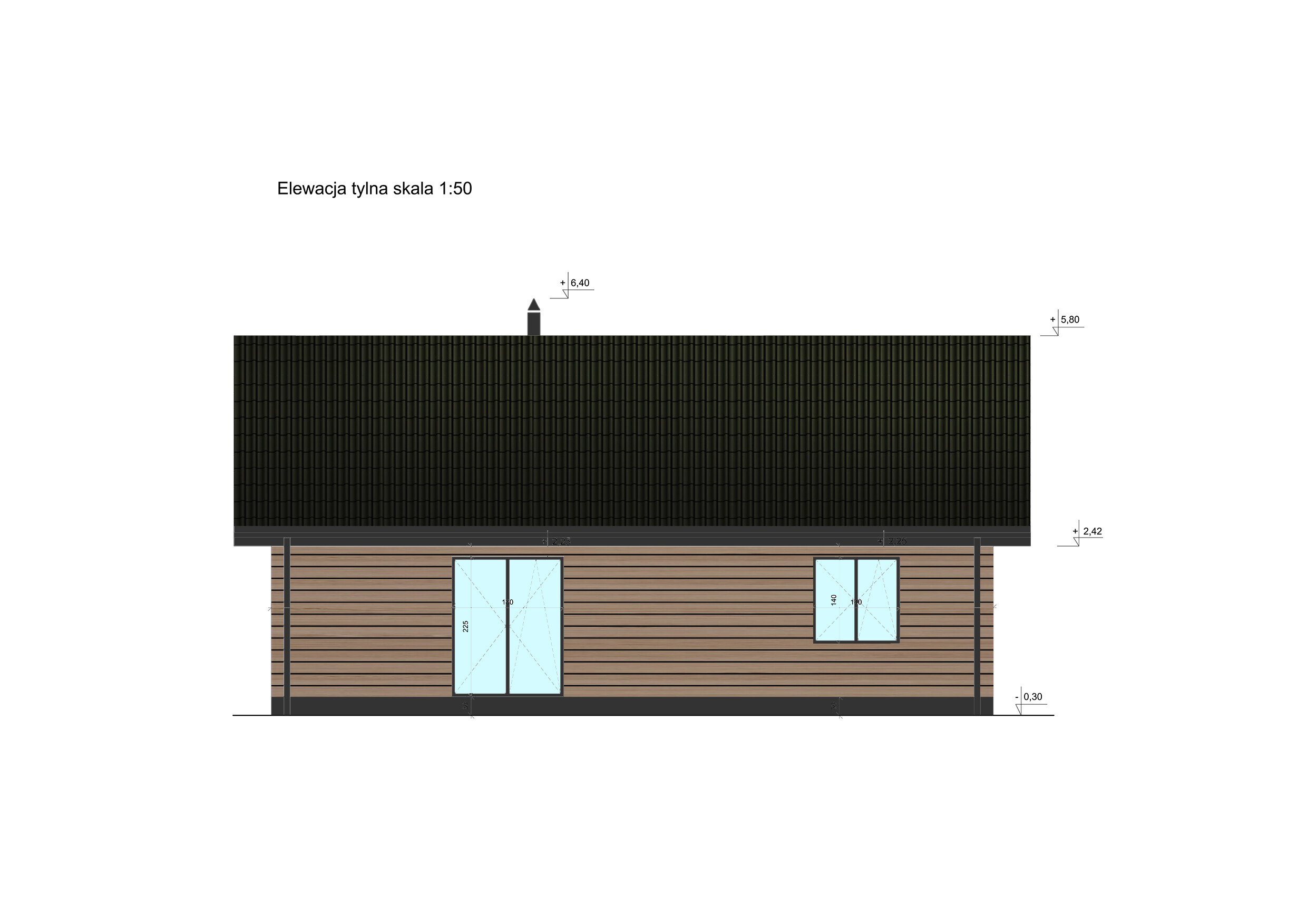 - wysokość budynku 7.36 m / ścianka kolankowa 80cm