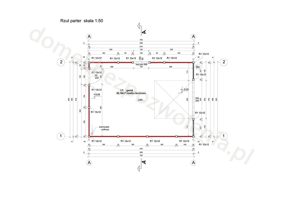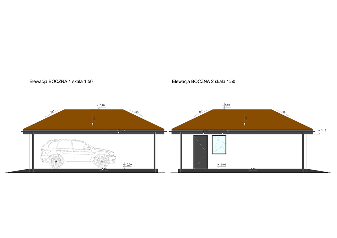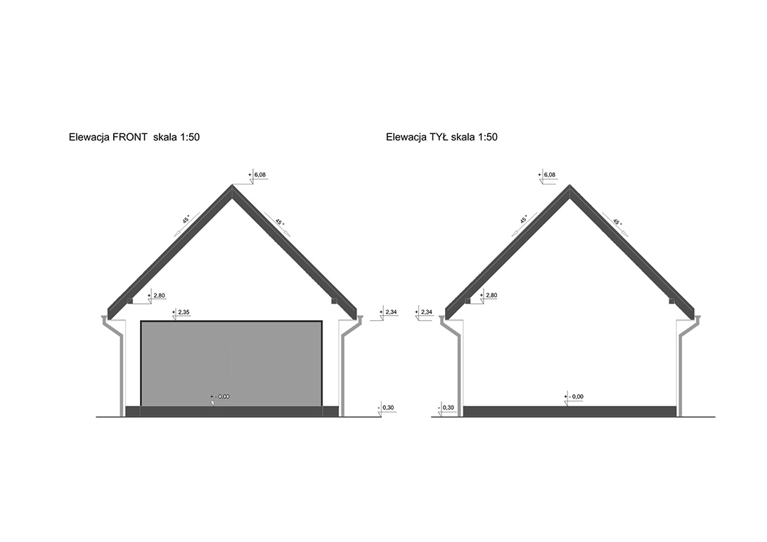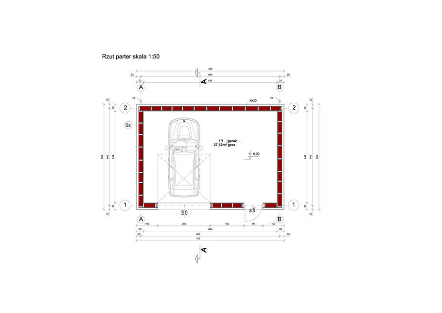 Gotowy projekt Garaż 35m2 - szkieletowy / murowany. Dwustanowiskowy.