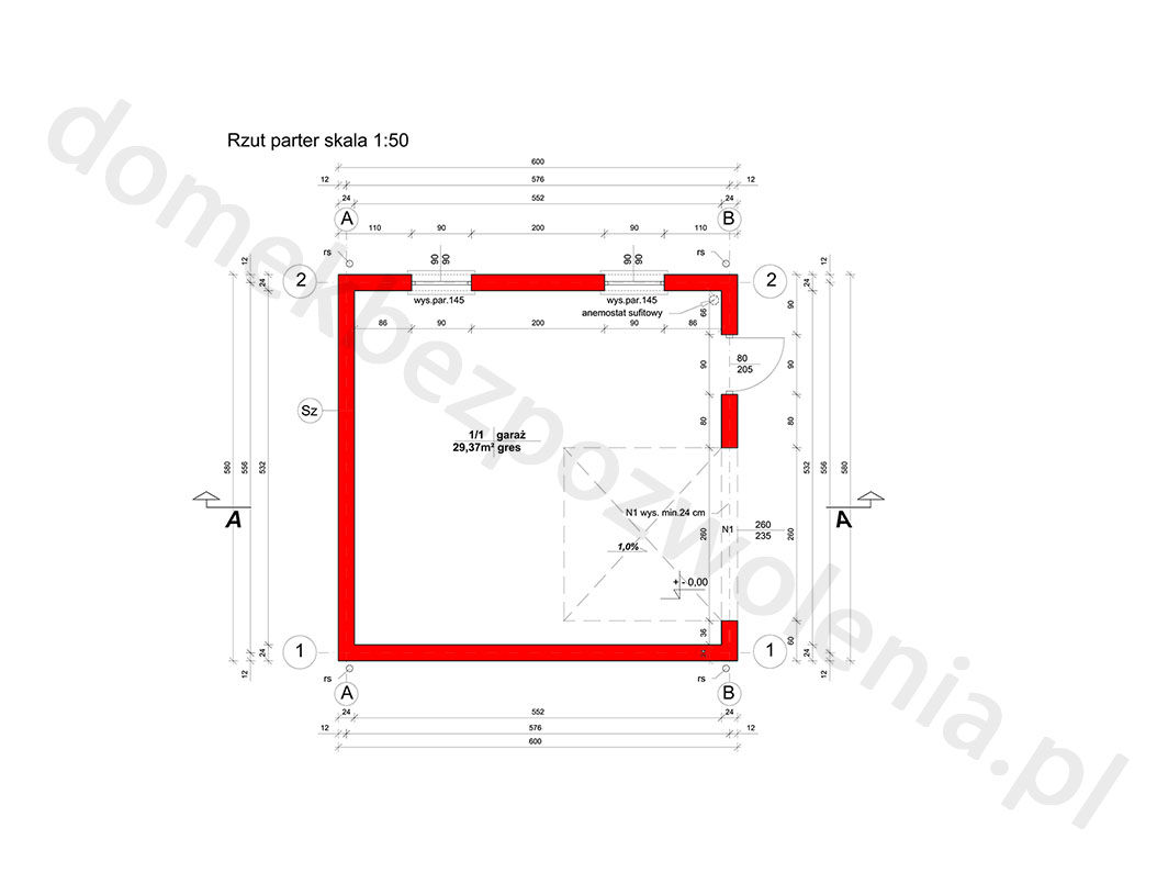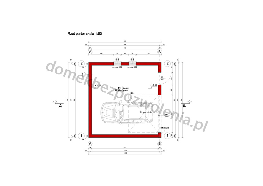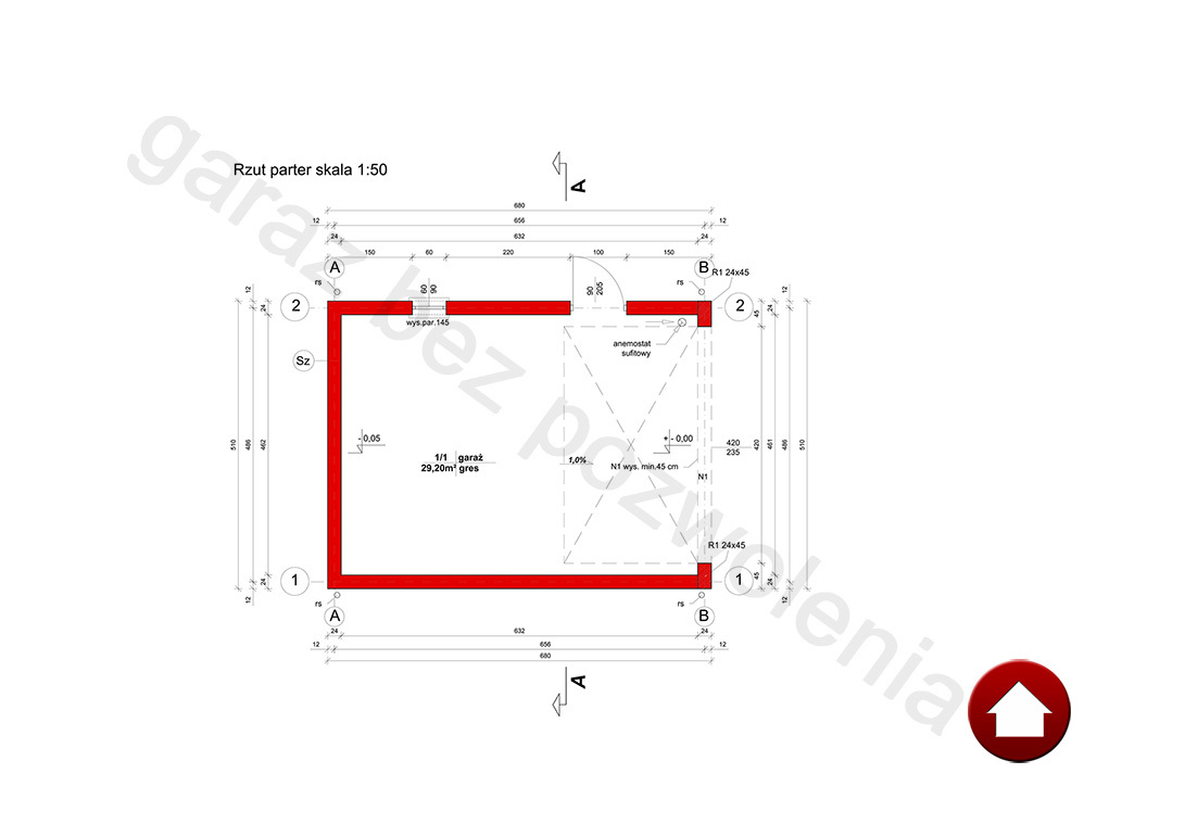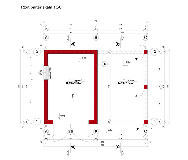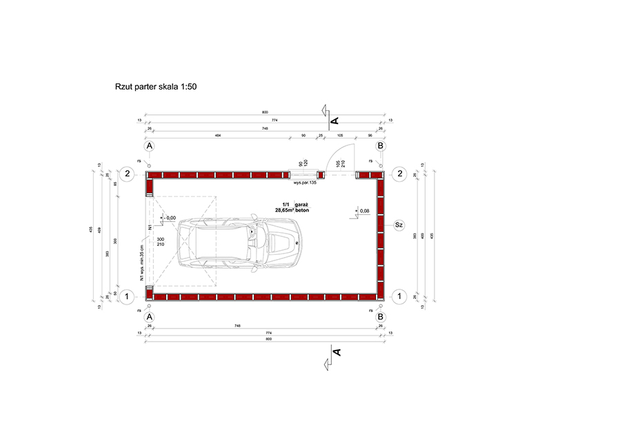 1. Projekt widocznego garażu na zgłoszenie do 35m2 zabudowy.
