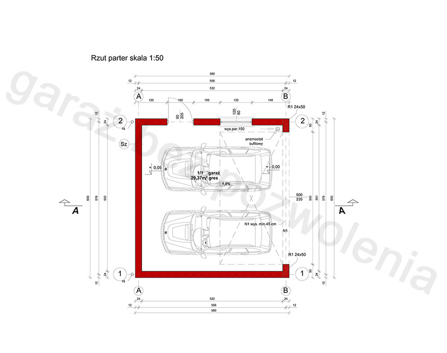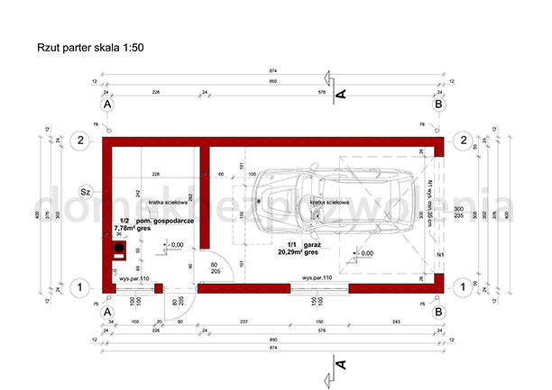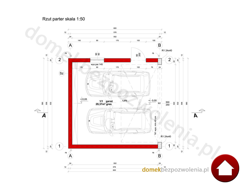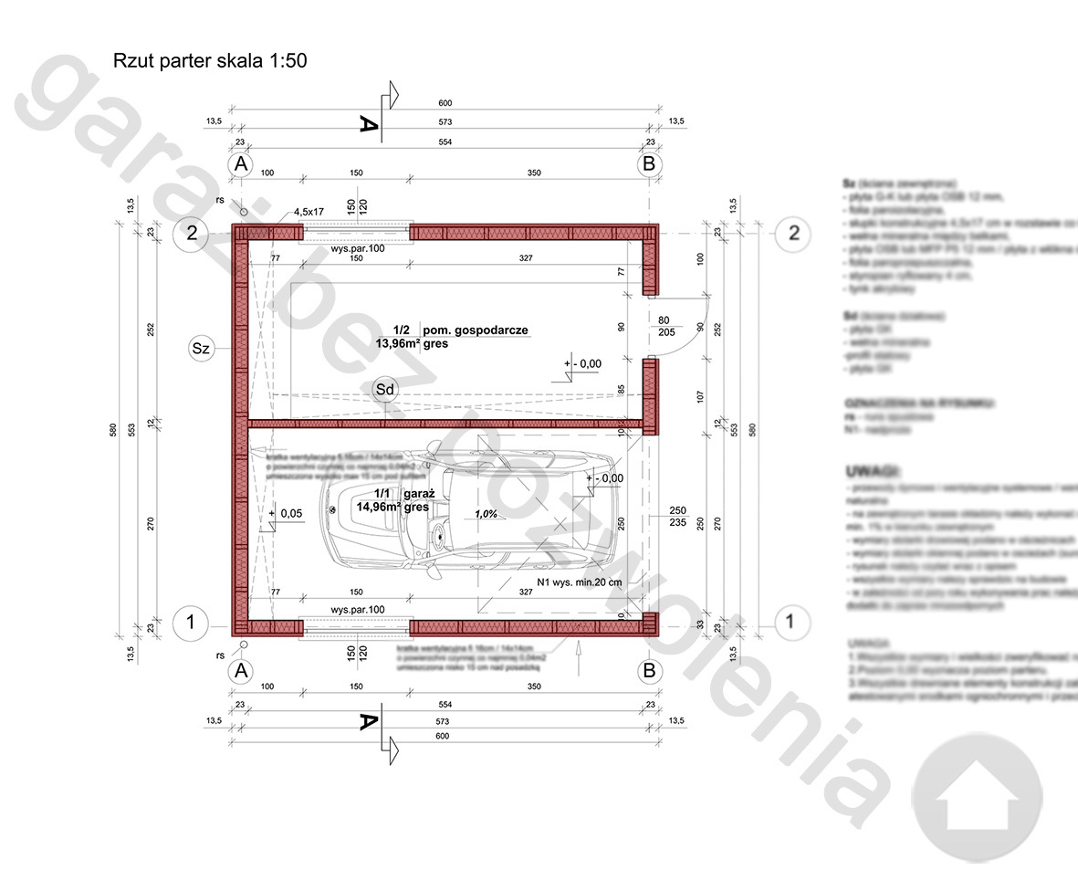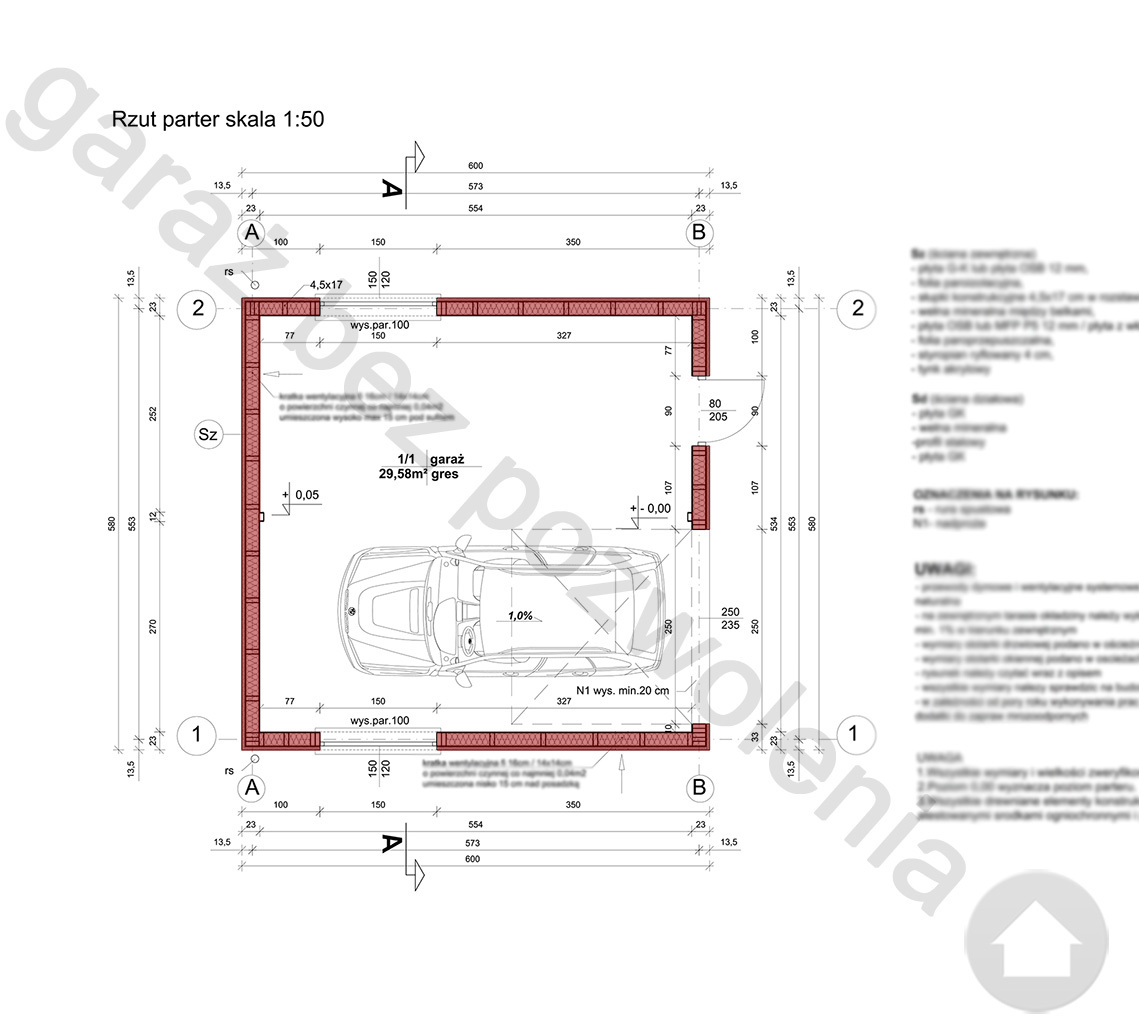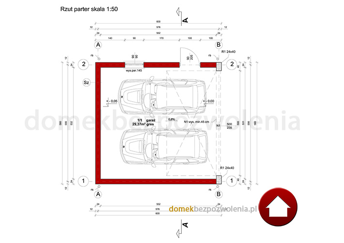 Gotowy projekt Garaż 35m2. Dwustanowiskowy.