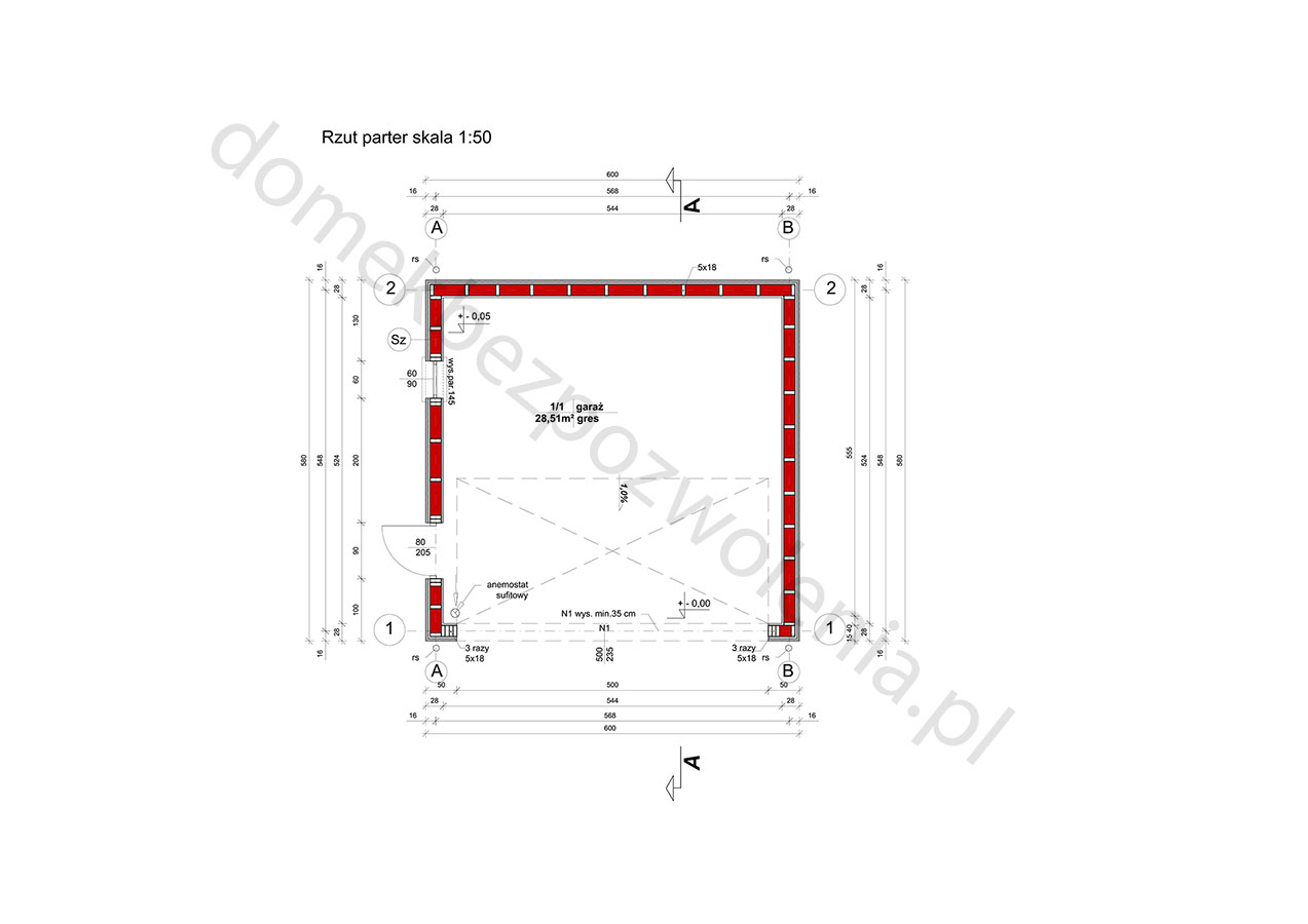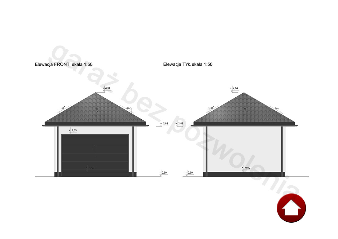 Gotowy projekt Garaż 35m2 - szkieletowy.