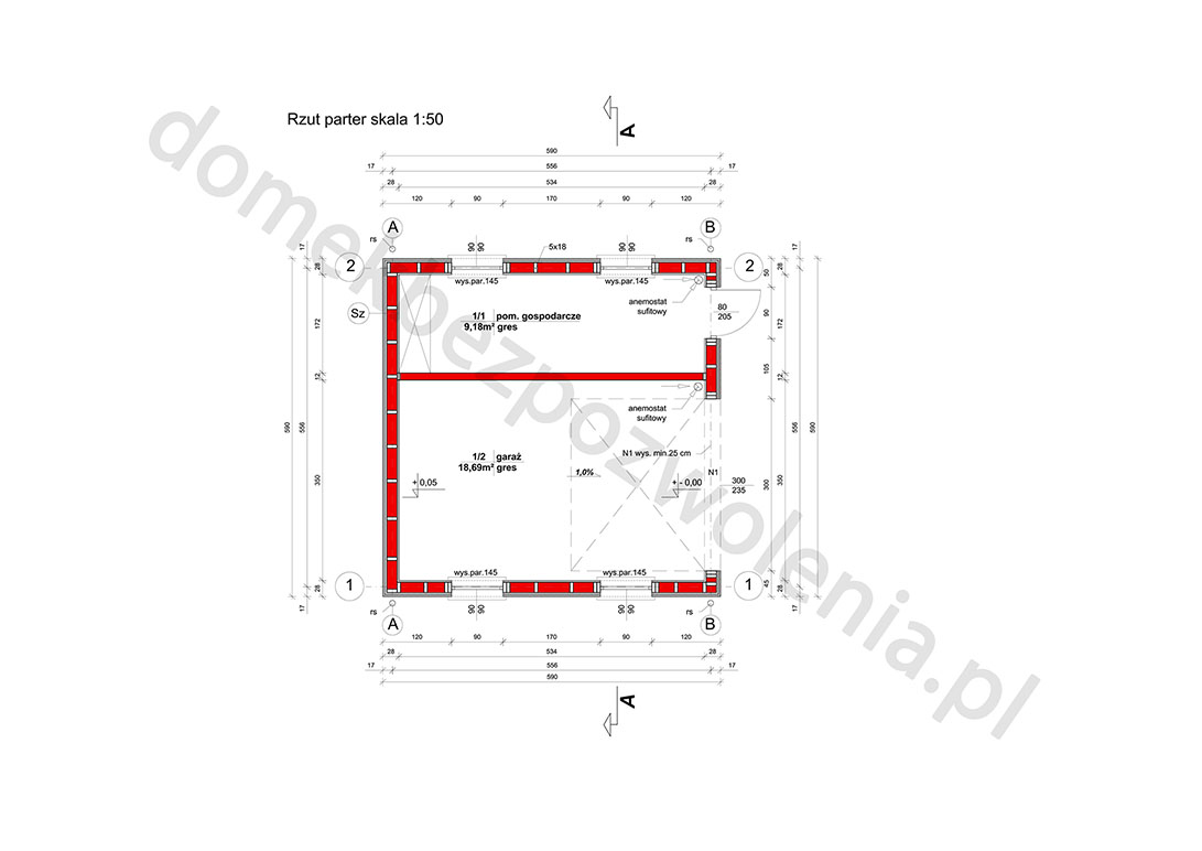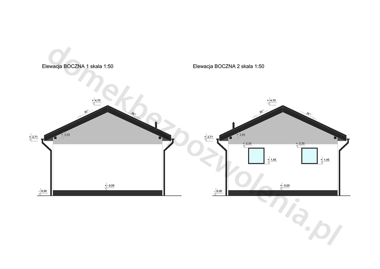 - wysokość budynku 5.00 m (wersja szkieletowa)