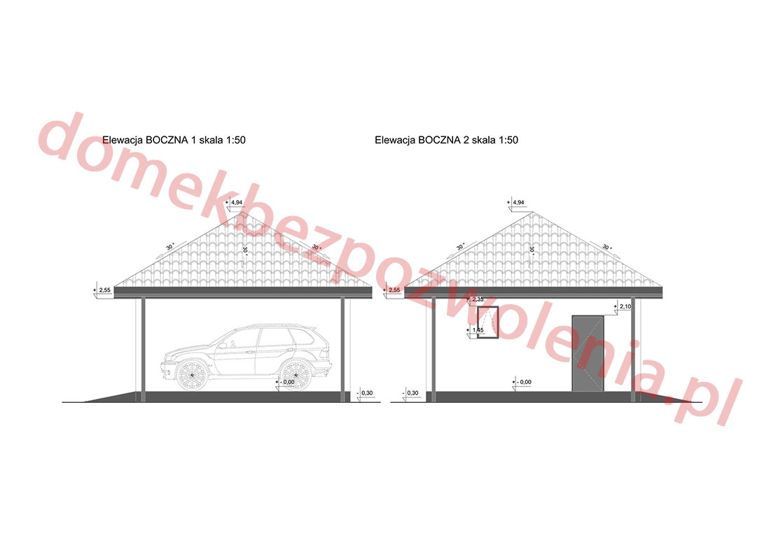 Gotowy projekt Garaż 35m2 - szkieletowy(drewniany)/blaszany (metalowy).